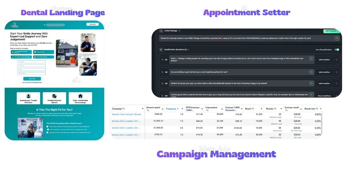 Yes. We handle the full setup, ads, automation, and follow-up systems so your team can focus entirely on patient care. Incase you require Appointment Setter to call the patient and book in, that can be discussed